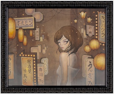 There is a new print out from Audrey Kawasaki. "Say Goodbye" is a giclee print on archival paper, 18" x 22" on a 19" x 23" sheet, signed and numbered in a limited edition of 200. You can get this print on August 22nd at 3:00pm pst for $220, or $480 framed. If you want this print you had better get over to Audrey's site right at 3pm Pacific, because her prints always sell out very quick. Get all the details here.
